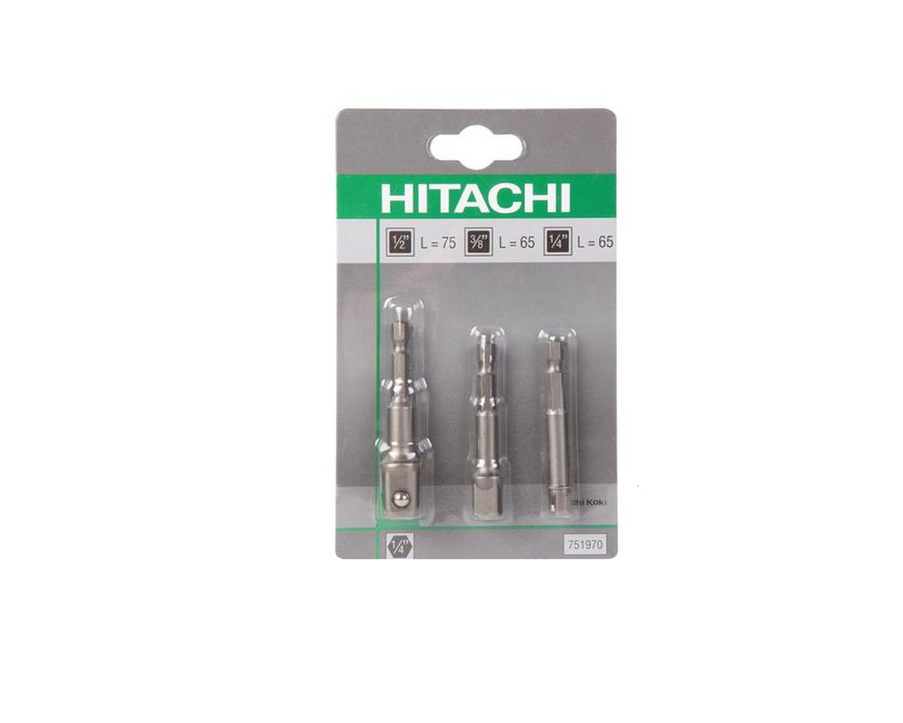 Converts a 1/4" Hex Impact Driver into either 1/4", 3/8" or 1/2" Square Drive for working with sockets