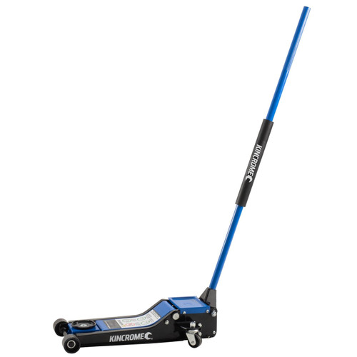 Superior quality and brand-new black & blue gloss finish, Kincrome Hydraulic Garage Jacks all come with a 2 Year Trade Warranty, steel castors, twin pistons for rapid lifting to load, protective handle sleeves and built-in parts tray, stamped with the iconic Spanner Head Logo.